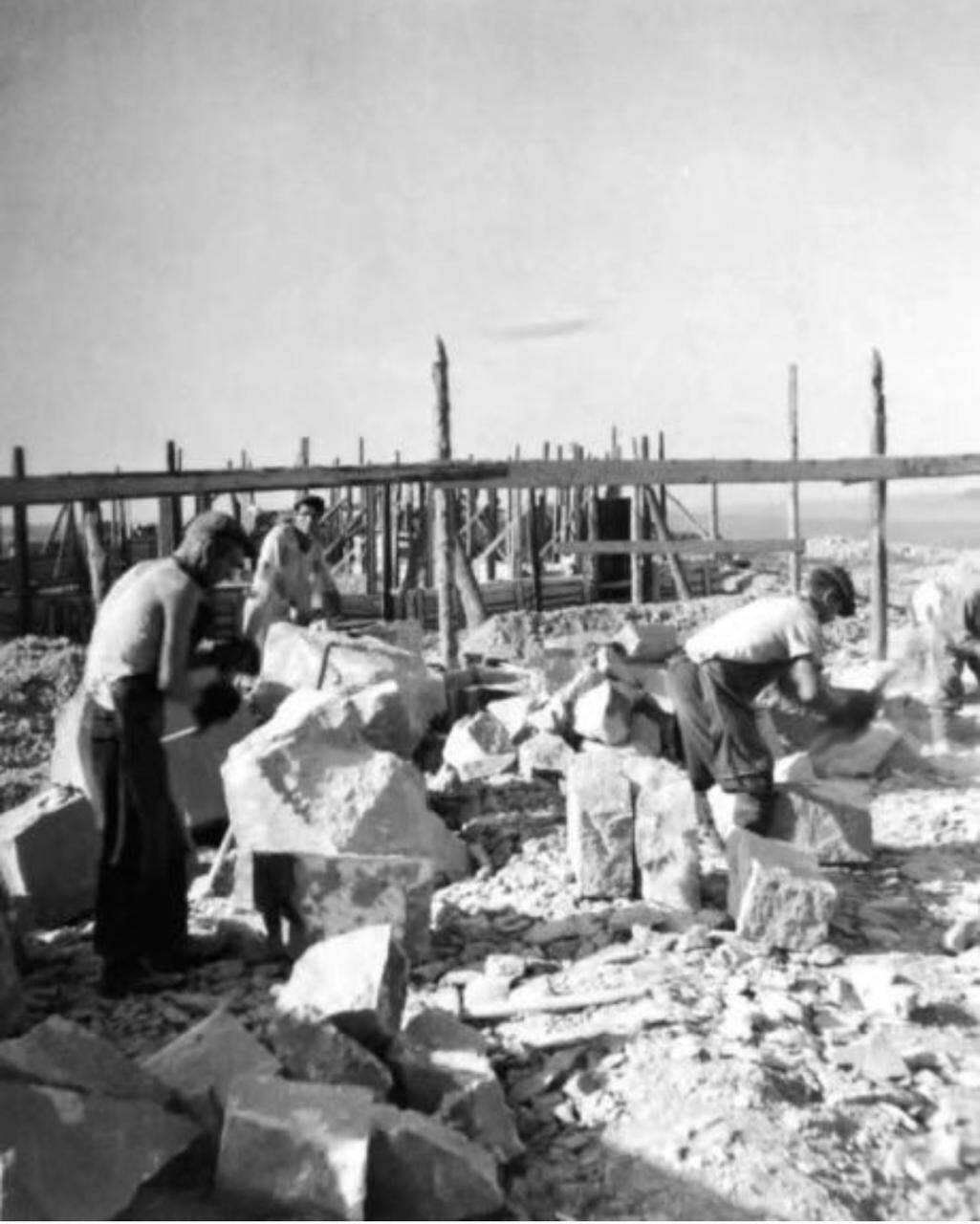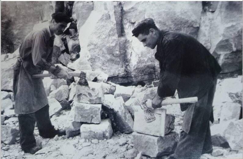 В 1953 году на карьер прибыли две резательные машины, которые пропиливали породу на глубину до метра. Затем эти камни, пока сырые, вручную дорабатывались, как и прежде, рубанком (настругом) и топором.