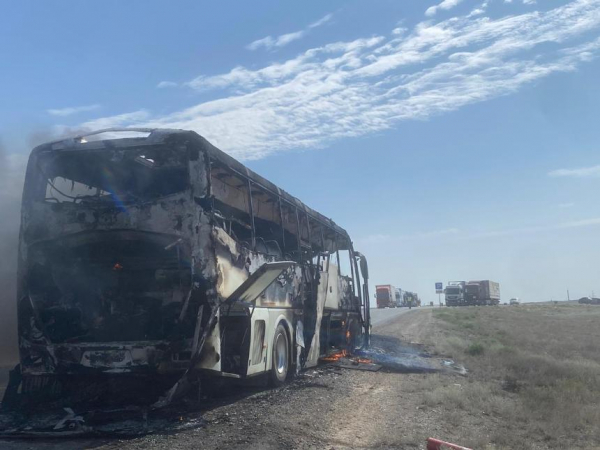 АТЫРАУ. КАЗИНФОРМ — Автобус дотла сгорел на трассе сообщением Доссор — Кульсары в Атырауской области, передает корреспондент МИА «Казинформ».