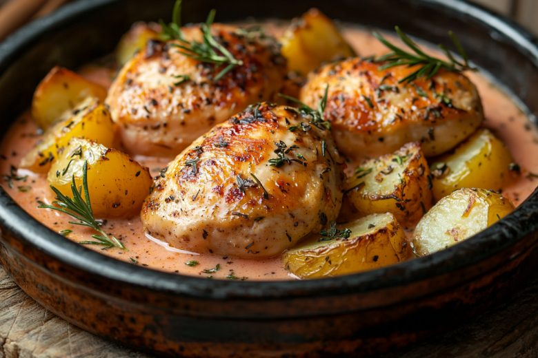 Никакого сыра, поливаю курицу с картошкой соусом из 2 ингредиентов: вкус и корочка — отвал башки